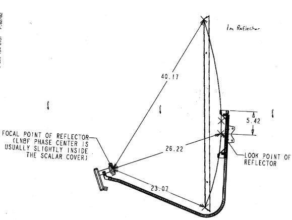 what i do is tape a length of string at the very top and very bottom of the dish. mark the bottom string at slightly over 23" and the top string at slightly under 40 1/4 "with a marker. tie a knot where the two marks meet. pull taught and thats where your focal point is. it should be about 1/2" inside your lnb and not right on the protective cover. draw (or imagine) an x between the 4 bolts that hold the dish to it's support. the lnb should be aimed/tilted at the centre of the x