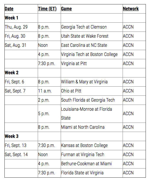 Dish Network subscribers CAN watch ACCN games. They would just need to subscribe to another service (Hulu, YouTubeTV, etc) to do so.