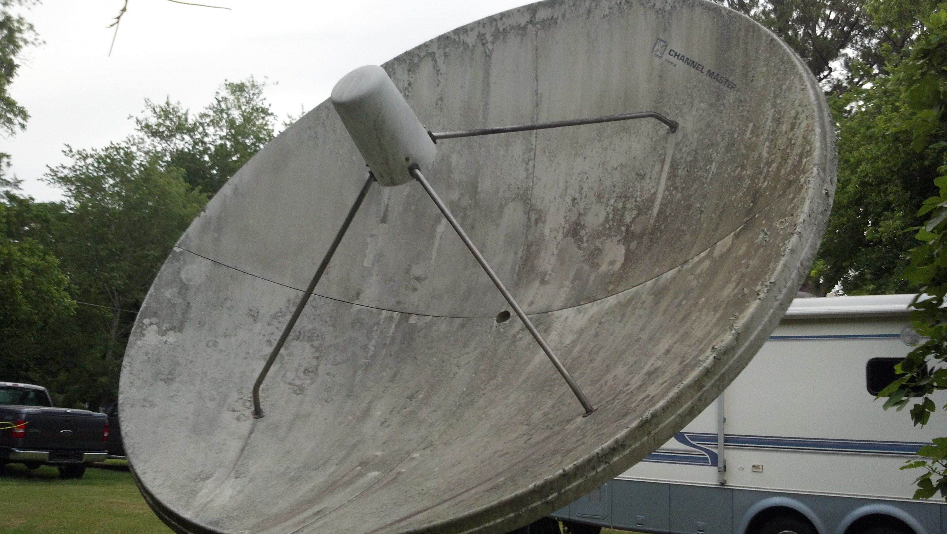 Just Yesterday acquired rights to a MONSTER 12 Ft Fiberglass Dish! Looks similar to the one above roof in your pics.The Pole is 5.5-6 Inches! Goes all way to ground OVER other pole.(What owner said anyway).He give it to me.It's going to be a JOB to get dismantled.Got eye on 10.5 Ft Fiberglass just few blocks from here.Think i can get it.12 Ft is 7-8 miles away.Boy,neighbors here will LOVE me if i get the 12'er up. LOL!