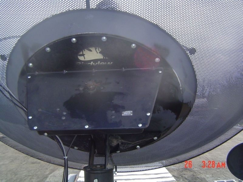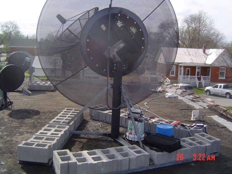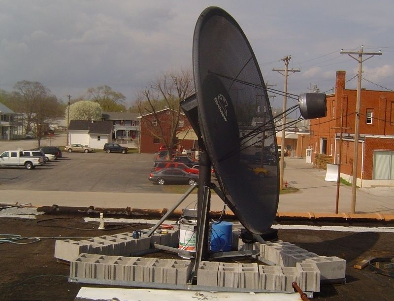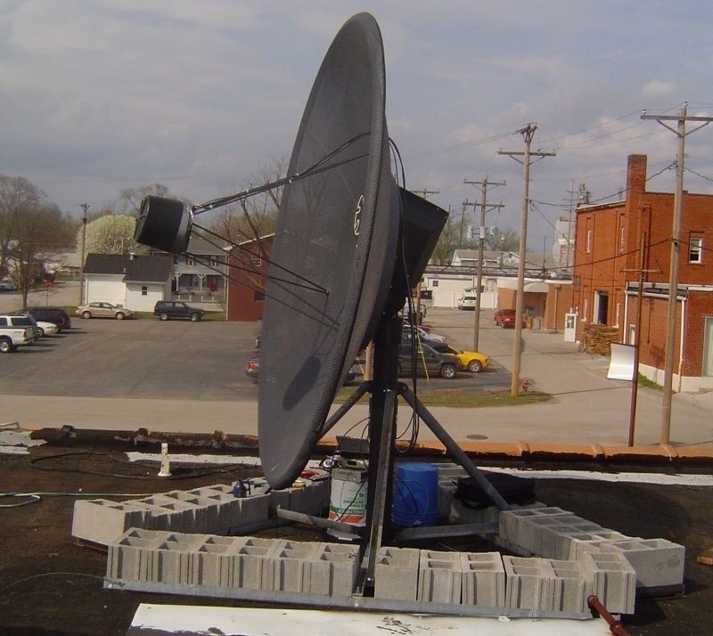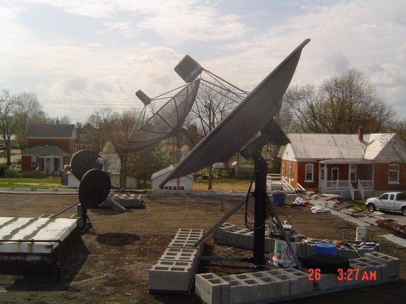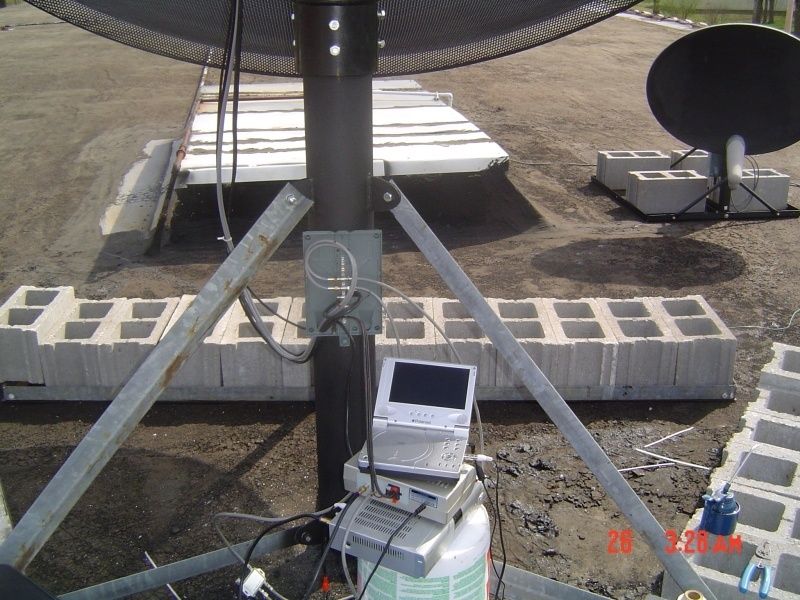 Took the old Drake and mini-dvd up to move the dish to center so I could drill out the 3 new upper holes on the cap. Moved the dish to about where I thought G-11 should be. My TSS. I had hooked up the servo and lnbs just because I wanted to. I don't even have a VCII board in that receiver any more. Flipped through a couple of channels and BAM, I had analog C-Band. SQ at 202 out of 255. That's with the dish setting there cocked and not plumb and nothing tuned.