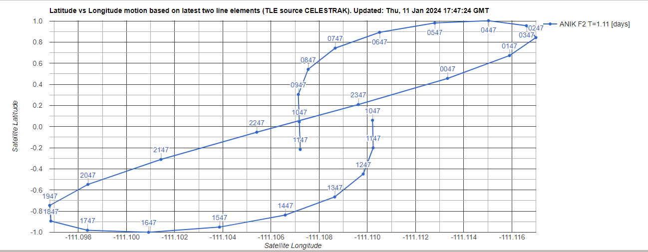 Why that is, I'm not sure, but wonder whether the timing of the East-West thrusters have an effect on it. They definitely aren't using the North-South thrusters at all, as then we would have seen a lessening of the inclined orbit. I will check some of the other inclined orbit satellites I know about and see whether there is a similar anomaly.