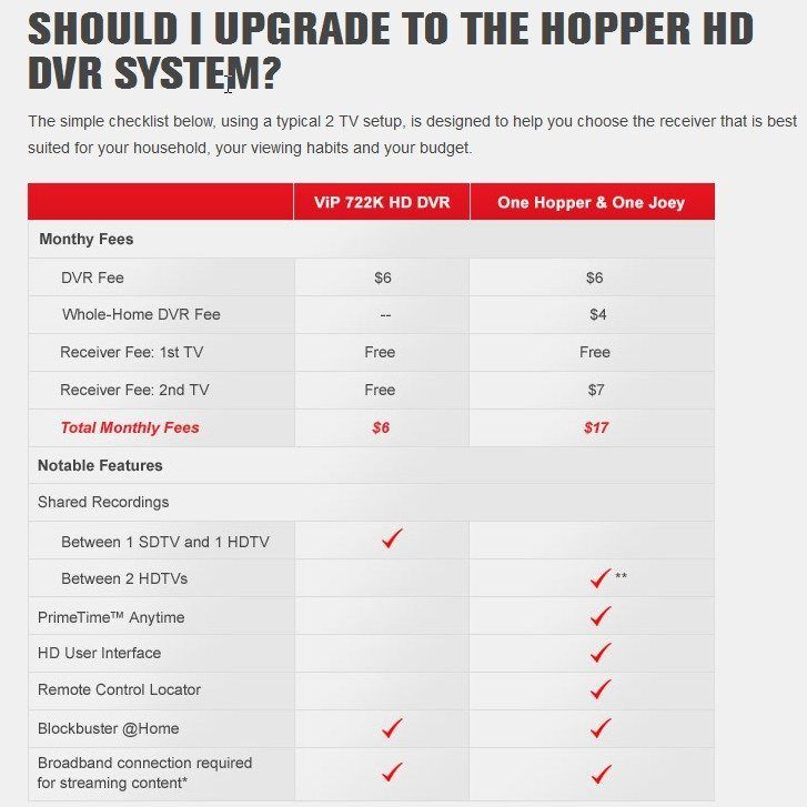 Agree, I would say the Hopper Upgrade page on the Dish site is very up front. The comparison with a 722 is well laid out and clearly shows the monthly fee difference between a 722 and a 1H/1J setup without any spin.