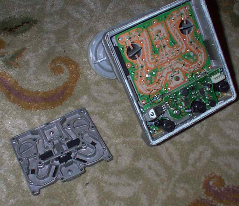 I soldered 2 2ft RG6 cables onto the lower PC board where the tiny coaxes from the LNB/feedhorn assembly formerly were. (I circled them with black circles in the 2nd picture above.) I threw out everything I no longer needed, and cabled up the aforementioned 2 cables with a 3rd on the DPP twin's input (for 61.5), and attached them to the feedthrough connectors of my DP34 switch.