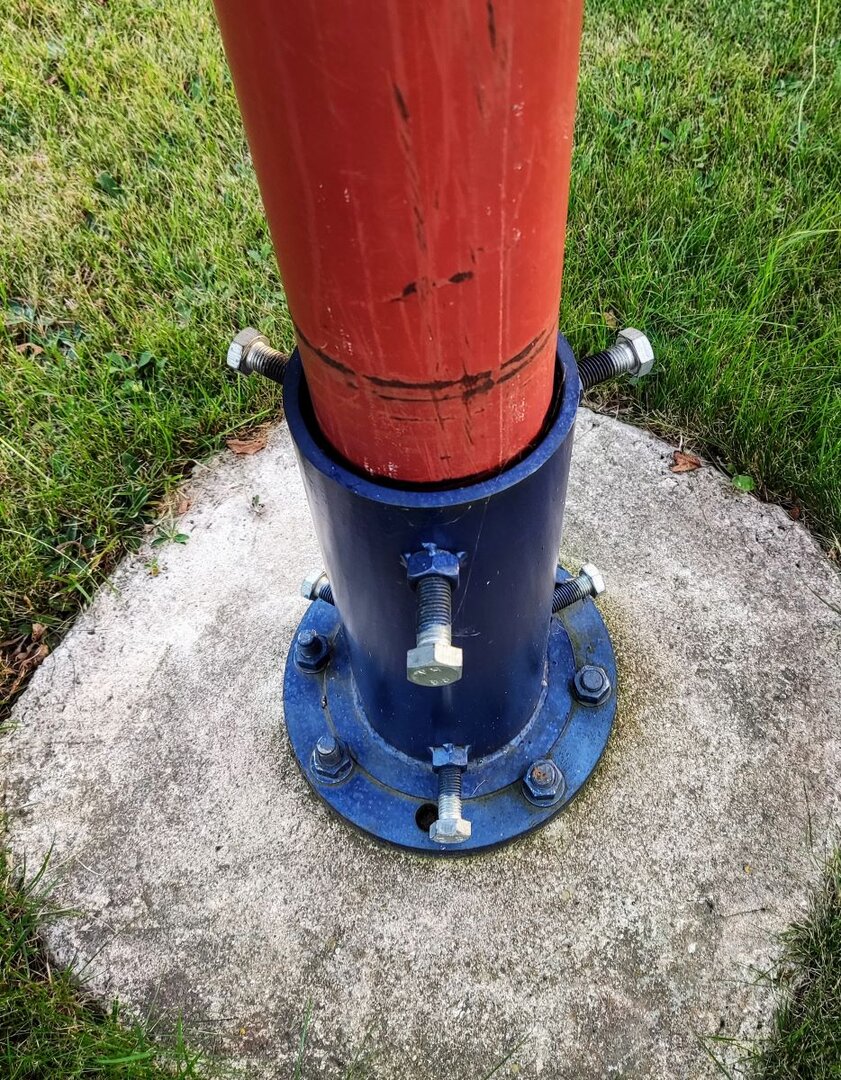 The first c band dish I installed was mounted using concrete anchors on an existing huge slab previously occupied by a shed - that one definitely wasn't going anywhere. When I planted my first pole in the ground I dug down to 24" to be past the frost line. The top of hole was a bit under 2ft and the bottom a bit over 2ft (bell shaped). Not exactly even all the way around because our ground is full of large and small rocks. I had to dig some out but left others jutting out to give the concrete something to bite into. I used (16) 40lb bags of 1101 Quikrete and rounded the top off with a dome to let the water run away. That pole has been up since late 2015. It has held the 8ft dish and now my 10ft Sami and it is still solid and plumb.