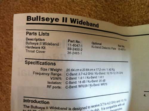 1- Bulls Eye II Wide Band feedhorn C/KU (3.7 to 4.2Ghz) / (10.70 to 12.75) ( already bought)