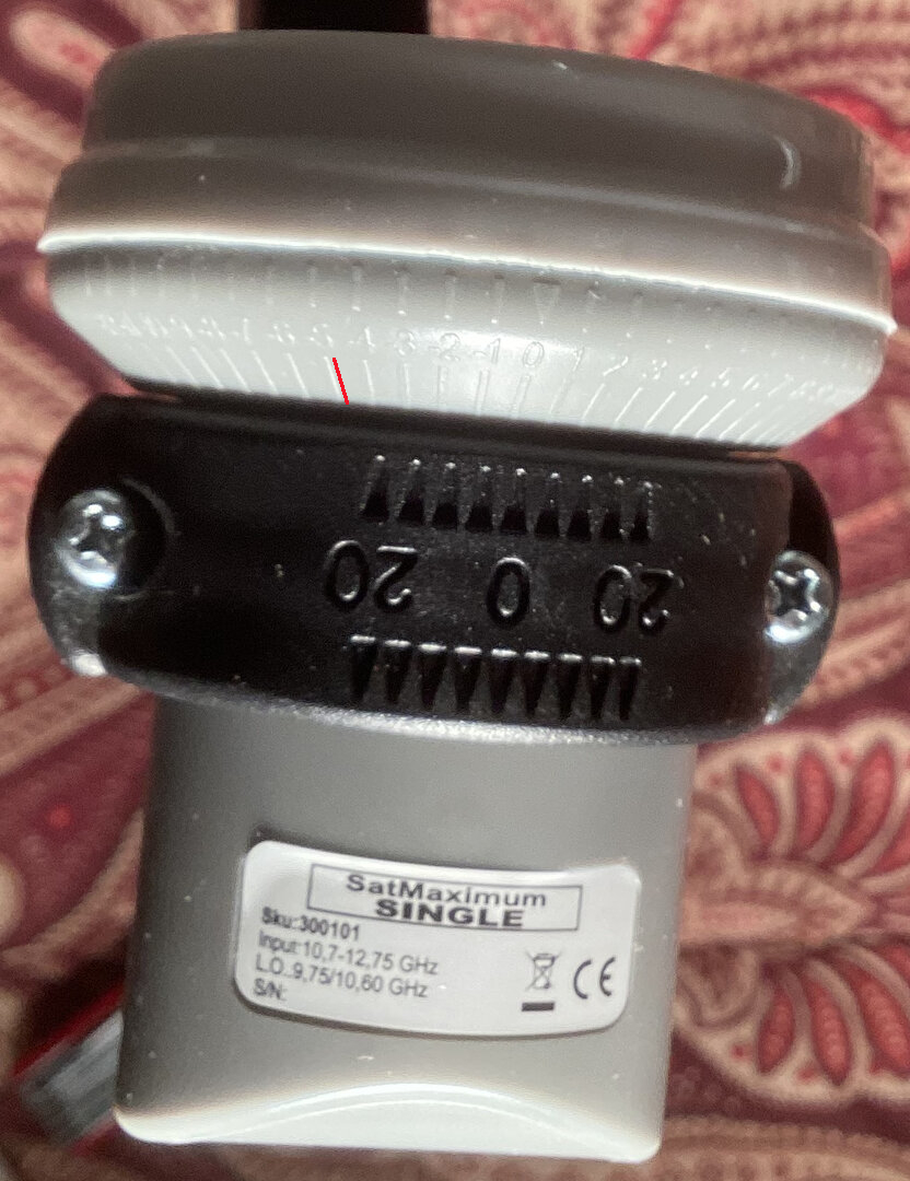 When you look at this in real life the LNB mount appears to be ticked at every 5° up to 20°. However, the number system on the LNB itself starts at 0° and ends at 13° but the numbers are spaced in such a way that they line up with the LNB mount at every 5°. I think everyone will agree on this?