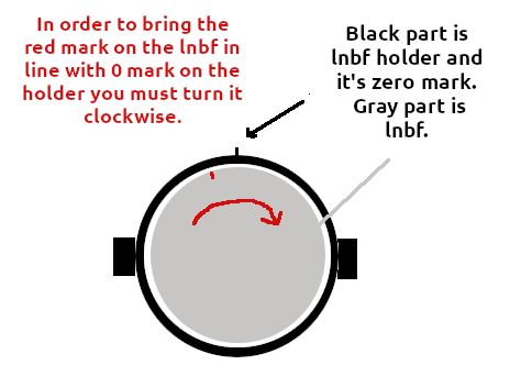 Something here is lost in translation. Your red mark is to the left of the ZERO meaning you turned counterclock wise. If your red mark was to the right of the ZERO on the LNB then you would be tuning clockwise. What am I missing????