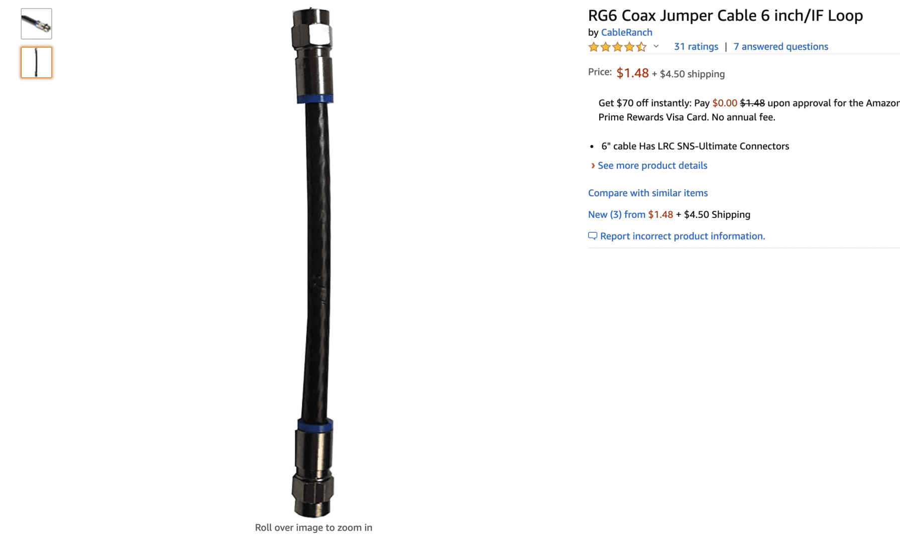 OK, so this is what you would need, a solo node, and 2 short rg6 coax cables. The solo node costs about $32. The two short cables (6") at Amazon would run about $10 with shipping.