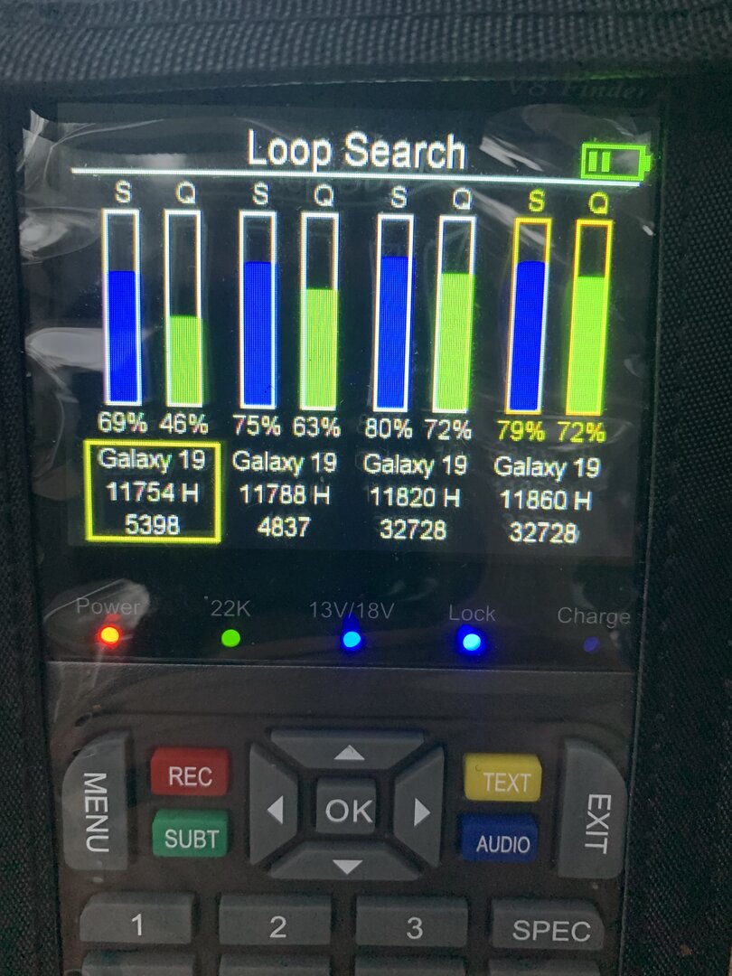 Okay I've started from square one. Mast perfectly plumb and locked down. Dish elevation set at 33. No motor. Trying to find Galaxy 3 C which shows at 94.9 on lyngsat. Entered lat and lon for location. Have slowly moved from due south to west. Same results. Nothing.