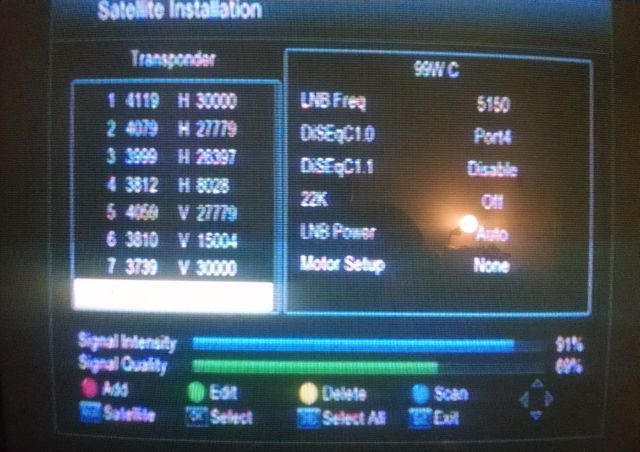 Next highlight the desired transponder, meter will show S and Q of highlighted transponder: