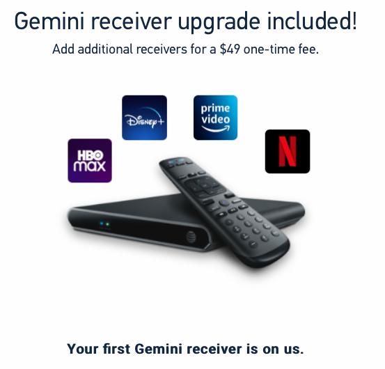 Gemini is the most significant hardware launch for DIRECTV's satellite customers in nearly a decade. Building on DIRECTV's already industry-best picture quality, this wirelessly connected device allows customers to watch 4K across their favorite apps1. Gemini also provides an integrated Google voice remote2 to help customers search thousands of their favorite apps like HBO Max, Netflix and others while eliminating the need to switch between TV inputs3. Best of all, the first Gemini device is included for new DIRECTV customers at no extra cost.