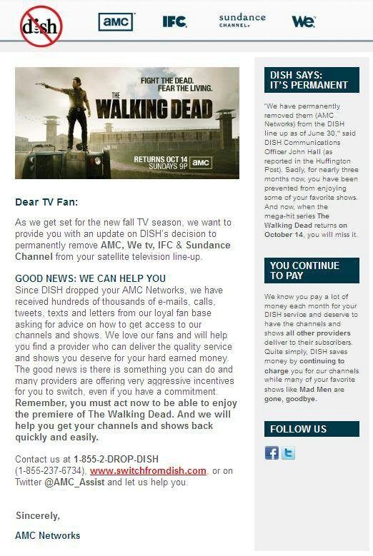 I think that Charlie/Dish would return the AMC networks (AMC, IFC, We TV, and Sundance Channel) in lieu of paying the amount of money that AMC Networks is suing for.