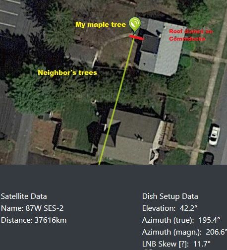 Neighbor's trees aren't tall enough to interfere at this point. When this pic was taken, I'd had a new roof and Commdecks installed. The three along the north side are all for dishes.