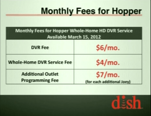 It will be available to conumers on March 15th for consumer activation and will be included in todays normal promotions.With AT200 or higher you can get Hopper and 3 Joeys for FREE. If you have less then AT200 you can get Hopper and 3 Joeys for $99.$7 Each additional outlet. Hopper retails for $499 and Joeys for $99.Upgrade is $100 for plan B and C customers. $0 for Plan A customers.$100 for Existing customers to upgrade to Hopper / Joey.No Mixed ViP / Hopper setups.It looks like each Joey is considered an additional outlet. For $7 a month. Ok DISH is watching and I am getting email (thanks!)...Correction... second hopper is $199 and the monthly fee with be $7 a month. And yes 1st Joey will still cost $7 a month.Thanks DISH for the info!Hey Scott, I didn't hear or see this at all yet but can an account have just 2 Hoppers? The Customer Estimate Sheet for the Hopper that I have does not show that scenario.They said on the chat that the answer to this was yes. They customer has to pay $199 for the extra Hopper then $7 a month for it. Is the first Joey included in the fees?? Otherwise it's $7 per month extra for that new second TV....No the first Joey is $7 a month as are each additional Joey...Answer by Scott - First Hopper would be $10 a month, Each additional Hopper and Joey would be $7 a month each.