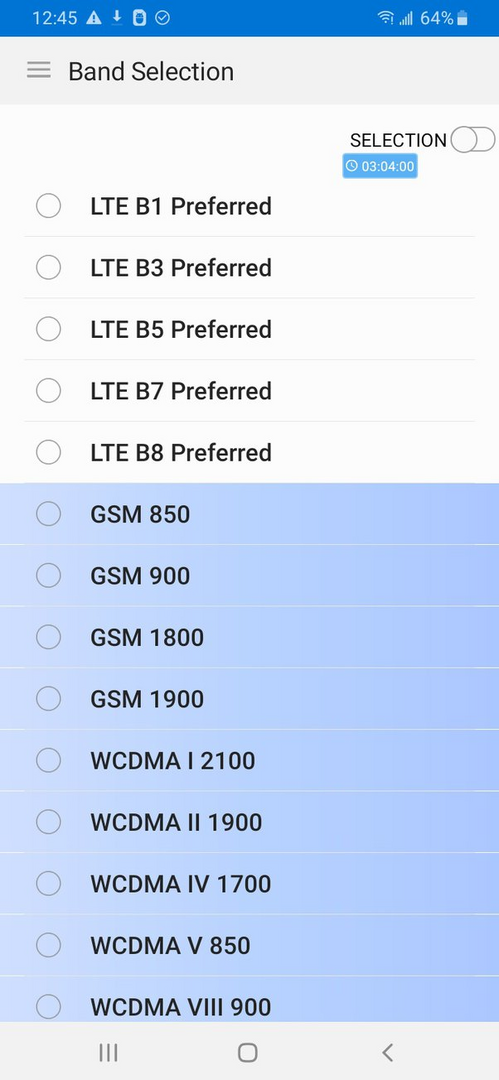 And this is how you select bands on a Samsung if you know how to enable the secret menu...