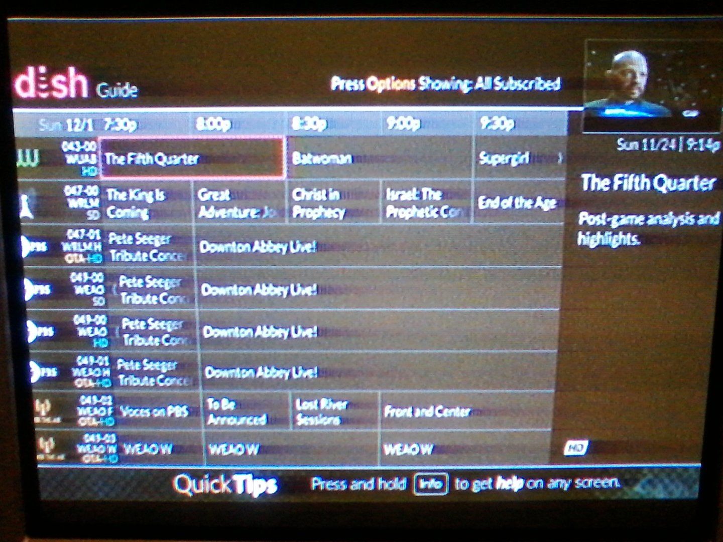 The Fifth Quarter show is listed as one-hour long, pushing