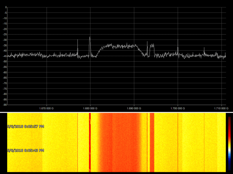 I used an AirSpy SDR running "SpectrumSpy". It allows you to view a larger band of spectrum than the SDR is normally capable of. It does this by rapidly switching the center frequency.What SDR software programs are recommended for displaying the characteristics of the GRB RF signal ? ...