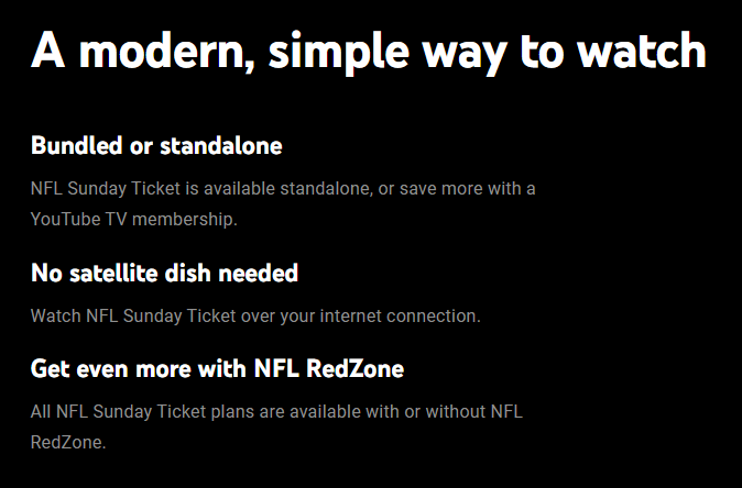 A lot of this conversation is about YouTube TV, but I'm very excited about being able to offer [Sunday Ticket] service in a la carte fashion on [YouTube] Primetime Channels. We're going to invest in bringing all of those features that sports lovers appreciate on YouTube TV to the main YouTube app. If you sign up for Sunday Ticket through Primetime Channels, you'll be able to benefit from features like key plays and game highlights, hiding spoilers, and those types of features that our sports fans have kind of come to expect and enjoy on the YouTube TV side.