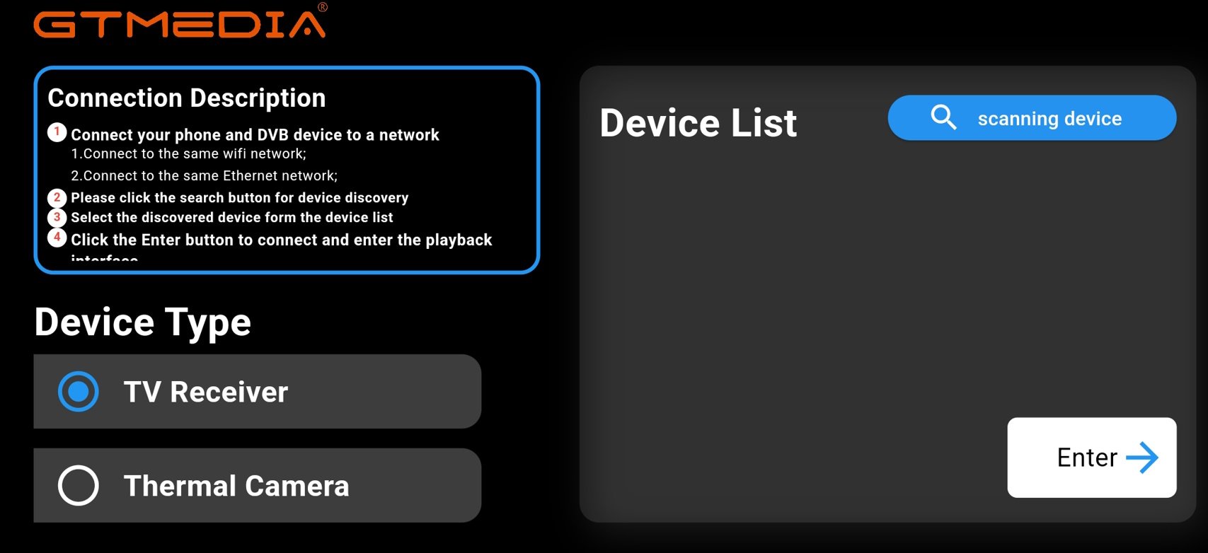 I assume you turn on the DLNA app on the V9. Then I run the GTShare app on my Android. It has a Device List with nothing in it so I can't click on anything as it describes. Therefore I can't press Enter in the app. I've turned on Media Sharing via Windows 10. I can see the GT Media box on my network.
