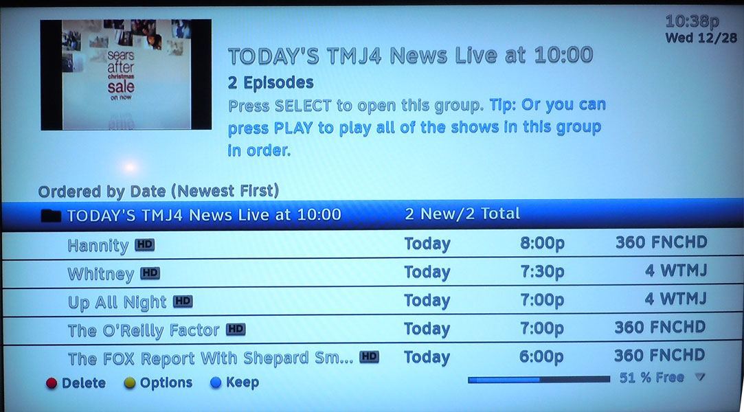 Didn't need to hook my DVR up to a nother TV. My HR20-700 has also lost the background graphic, and it's hooked directly up to my TV. Everything else appears correctly, but both the guise and my list have pure white backgrounds.