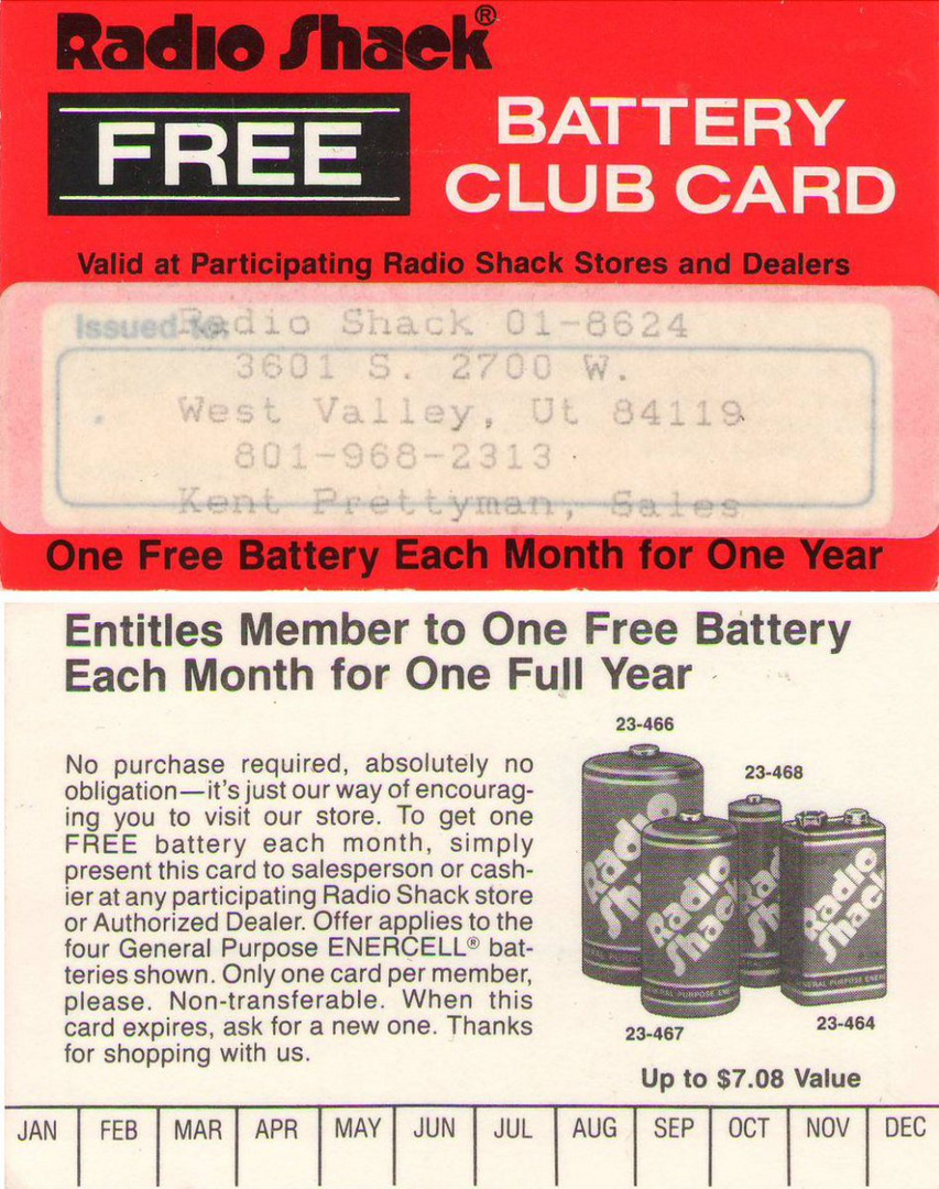 And let's not forget the Radio Shack Battery of the month club!