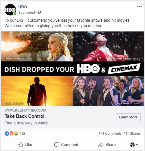 "The Department of Justice collaborated closely with Dish in its unsuccessful lawsuit to block our merger. That collaboration continues to this day with Dish's tactical decision to drop HBO – not the other way around. DOJ failed to prove its claims about HBO at trial and then abandoned them on appeal."