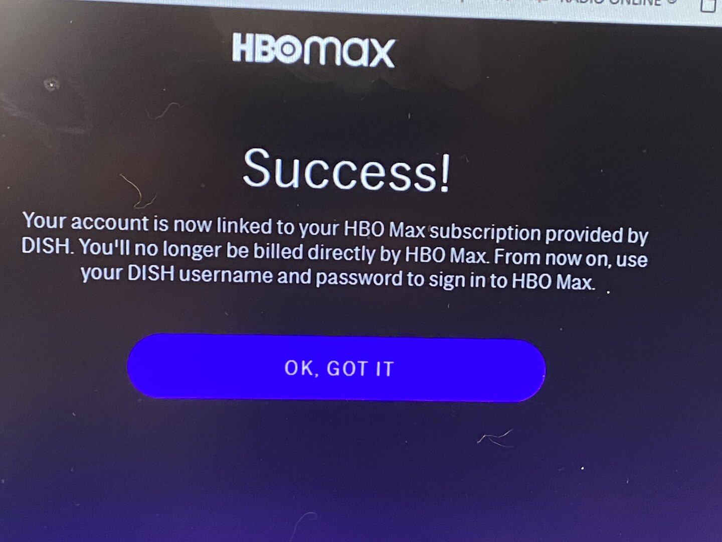 I went to play.hbomax.com/login on a browser I have not logged into HBO Max with before, then clicked on Login. Then Clicked Login with my Provider, clicked Dish. It asked me to set up an account. I told it my name and used the same email address I was using before for HBO Max.