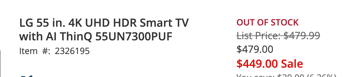 Ha! The first discount off the list price was only $0.99! I bet that it nearly sold out at that price, even before they took the extra $30 off.I purchased this for a neighbor 2 months ago. How can a 55" Smart TV that cost $449 have smarts that cost $500....