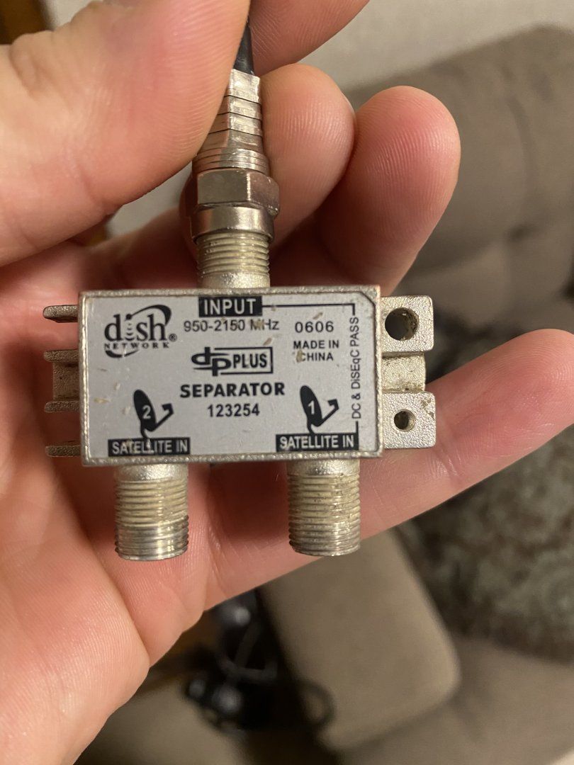 Do you see any part numbers? I am going hazard a guess and suggest that a legacy bandstacker existed at one time to stack the two bands coming from a legacy dual. Has anybody seen one of those? I've seen the reverse and in fact have one that goes from DP to legacy. Not what Gdsmith needs! :( But the DP output from that old "switch" (if that is what it is) should work with a DPH42 and a Hopper3.