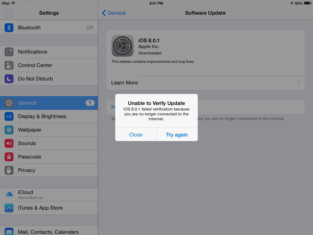 Or you got it right before Apple pulled it (8.0.1) and your iPad saved you from you installing the flawed version. Glad to hear you got it figured out.