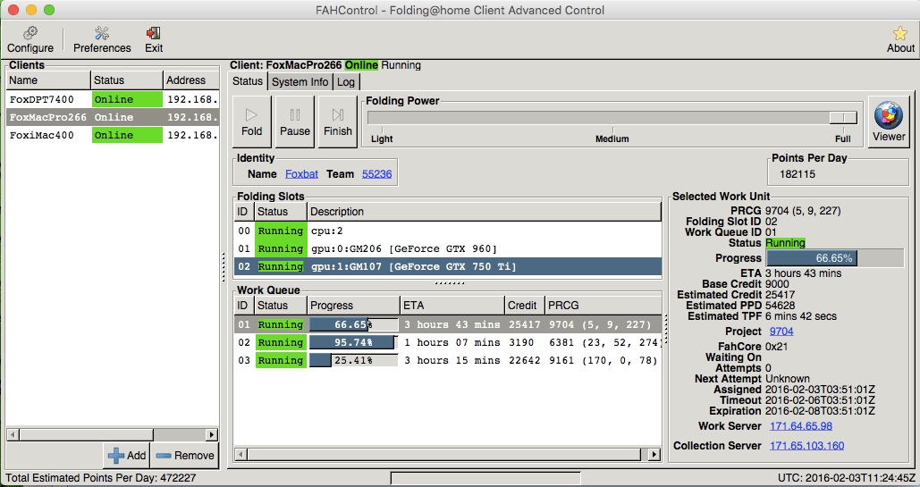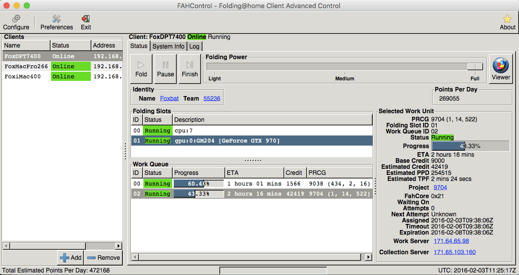 Joshua, were you able to get your monitor PC set up with the FAH Control program? I have that on my MacBook Air that isn't much good at Folding (mobile CPU and no GPU to speak of) but I can keep an eye on things from anywhere in the house: