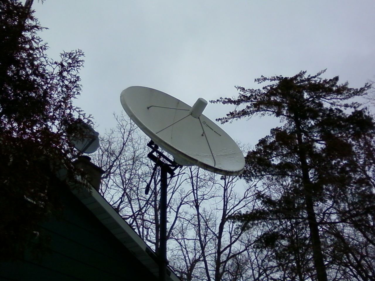I took the liberty of expanding the pic and from the shadow of the feed support leg you can tell its bent in the classic CM/Andrew way. Some very old CM fiberglass dishes don't have that center plate. See first pic. It's an early version CM that has the model name "Channel Master TVRO" on the front. These versions have no backside ribbingFrom that angle, I can't see the bend in the legs as a ChannelMaster/Andrew would have.