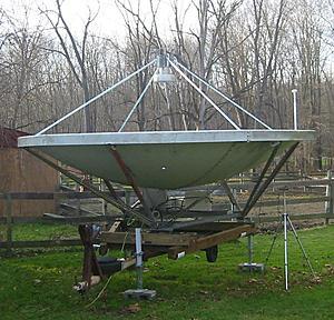 Aluminum (solid) 4.6m parabolic dish antenna with steel mounting. depth approximately 36 inches. Located near Cleveland, OH. The dish comes apart in two halves. Dish is free, but you must pick it up your self.