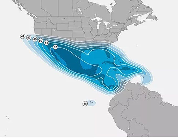 67W satellite, beams are as shown: