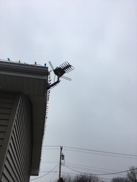 The antennas also work for a low VHF station that transmits on channel 4 from a mountain top 14 miles away.