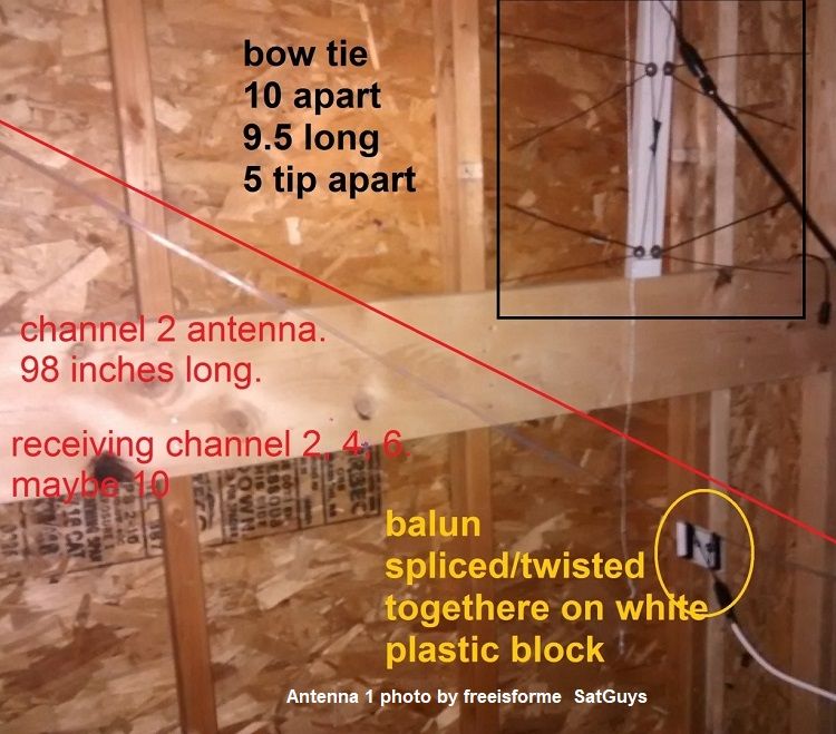 I see you are using a splitter in reverse to combine your VHF-Low twinlead antenna with your 4-bay bowtie antenna.