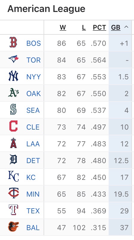 I agree, but I do think it's currently looking very good for the Sox to get that second Wildcard. Both the A's and Blue Jays are falling off the face of the earth right now, so that leaves the Mariners as the Sox biggest challenger for that spot. IMO, the make or break part of the Red Sox season is 2 weeks from now (Sept. 10-15) when they go on a 6 game road trip against the White Sox and Mariners. A bad road trip there could prove fatal