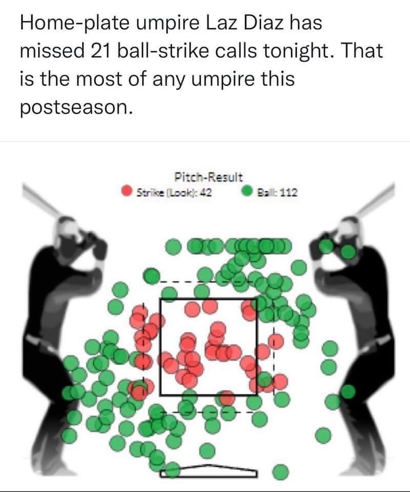 Cannot believe the amount of missed calls. So many balls that were called strikes tonight. I'd much prefer computerized strike zone and the ump can just stand there and say what the computer tells them. It's awful that a batter has to expand his strike zone because the ump is out of whack. Sad way to lose a game 5.