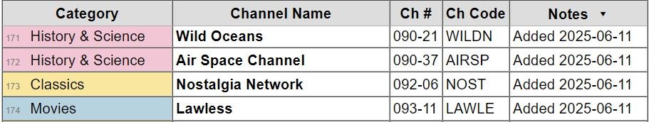 Kudos to you for this, I think this list should be sticky for much easier reference. well out side of bookmarking it guess. I watch stream channels on dish now, unless is some show I record or random movie. I dont watch normal channels anymore. DVR then is really bonus though