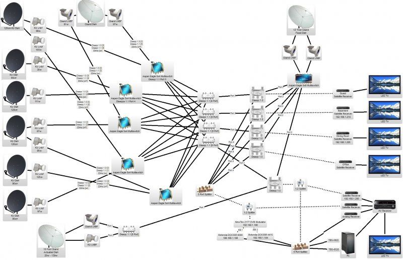 I will also add that all of this can be done without a multi switch, but then you would have to have the same number of LNB coax outputs as the number of receivers you wanted. SO, if you wanted to have 4 receivers, then all your satellites would need to have quad output LNBFs, and then you would need to use Diseqc switches and/or 22khz switches to jump to the individual LNBFs. I think this route is a bit more expensive, and requires more cabling to the dishes.