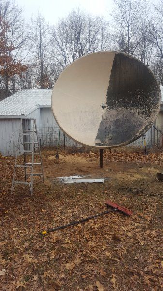 Nice job cleaning it. I had some mold growing on a couple wire mesh dishes, and I sprayed some Clorox full strength on them, and it killed the mold, and it blew right off with the garden hose. I have a HVLP paint gun in the building and I have plans to paint my dishes this summer. I have one grey and four black dishes that need painted.![]()