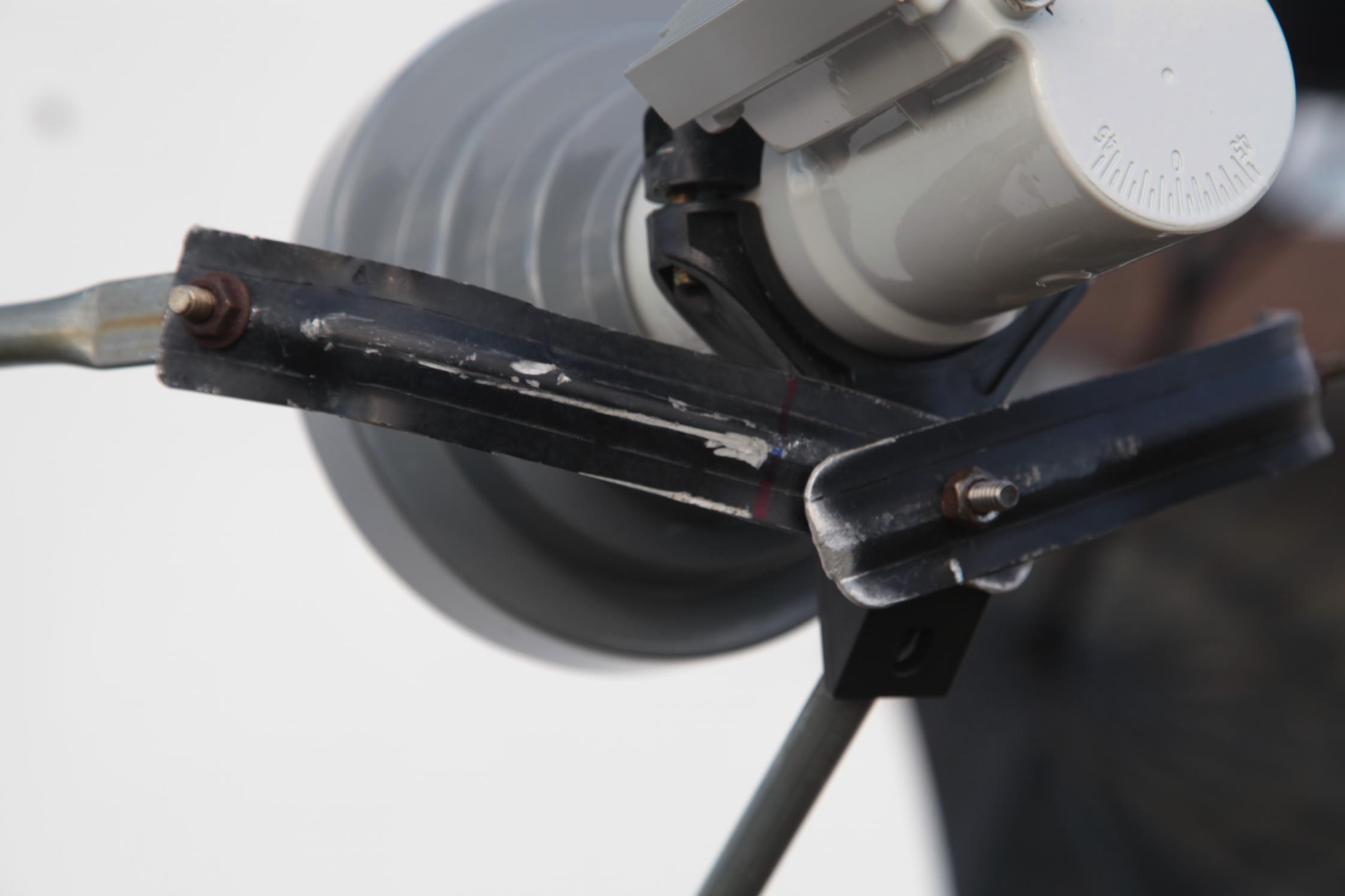 The dish has a special rib on it that you are supposed to use to set the inclination from but they tell you nothing more than that, that the rib is there. (bottom center rib) In a second picture I messed with the contrast and brightness so that it's easier to see this special rib.