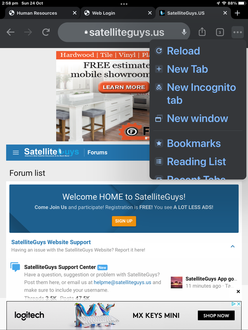 I don't know what to say. Difference between iPad & Android I guess.My Chrome browser does not show anything about installing anything or referring to any Satellite Guys application.