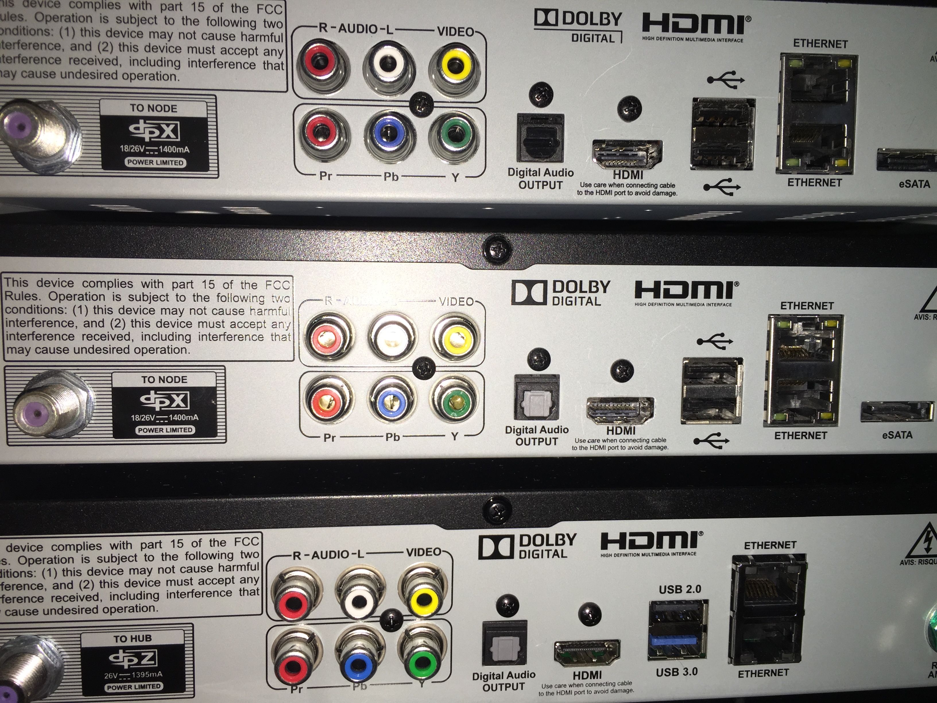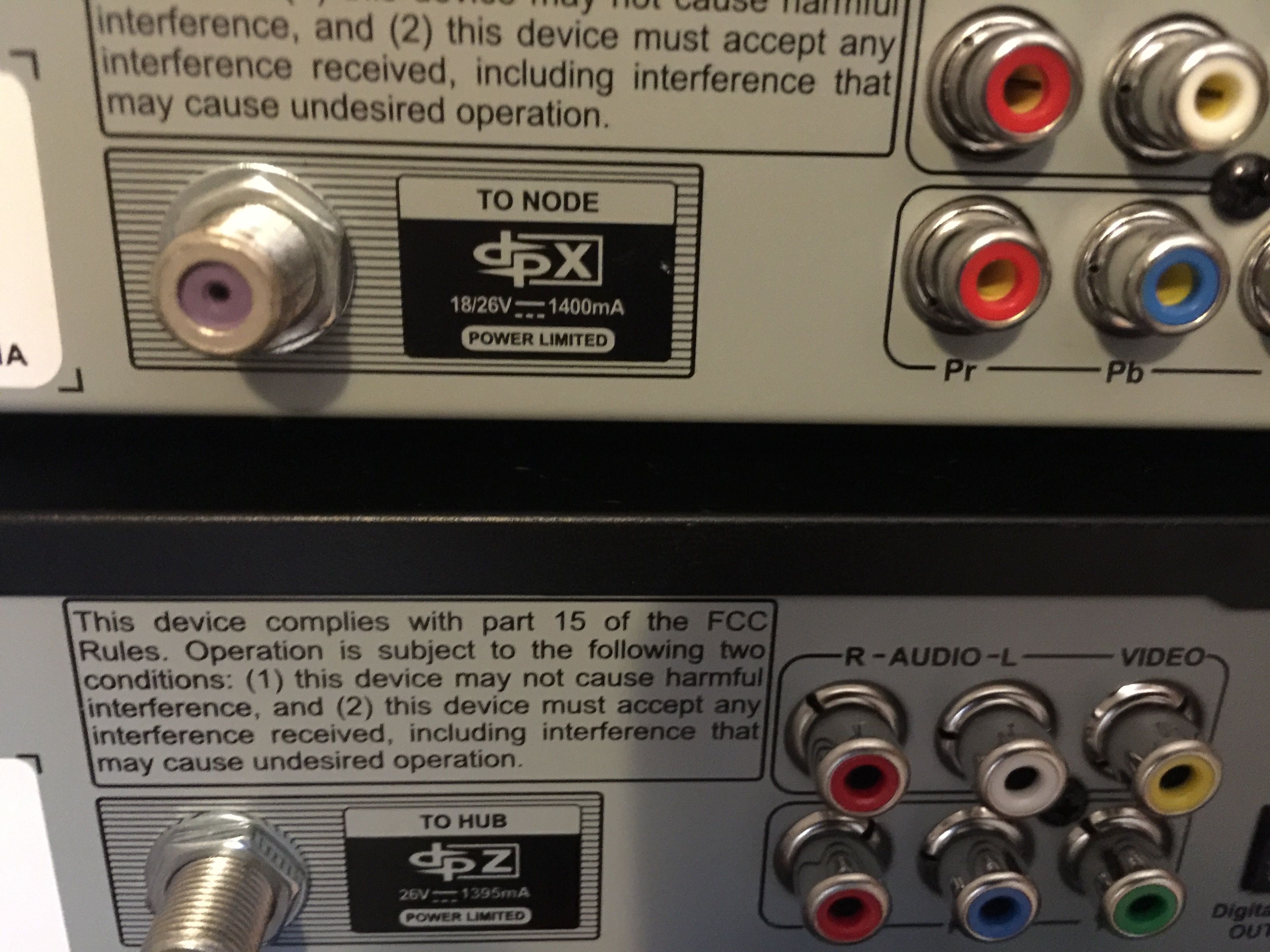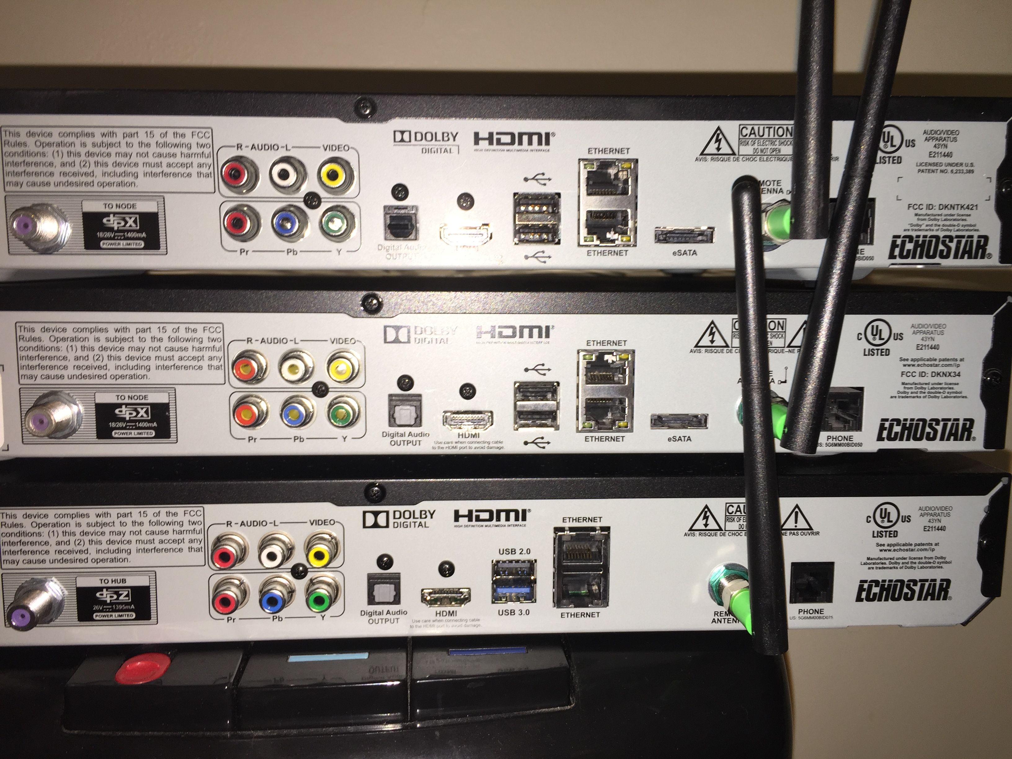 I have a Hopper with Sling and 1 Joey. I installed a new Onkyo receiver and need to connect the red/white RCA cable from the Onkyo to the Audio Output on the Hopper. But the Audio/Video outlets are connected to a powered box and the output of the box is coax connected to my Joey in the bedroom. Does the Hopper 3 have a coax hub that will free up the Audio/Video outlet?