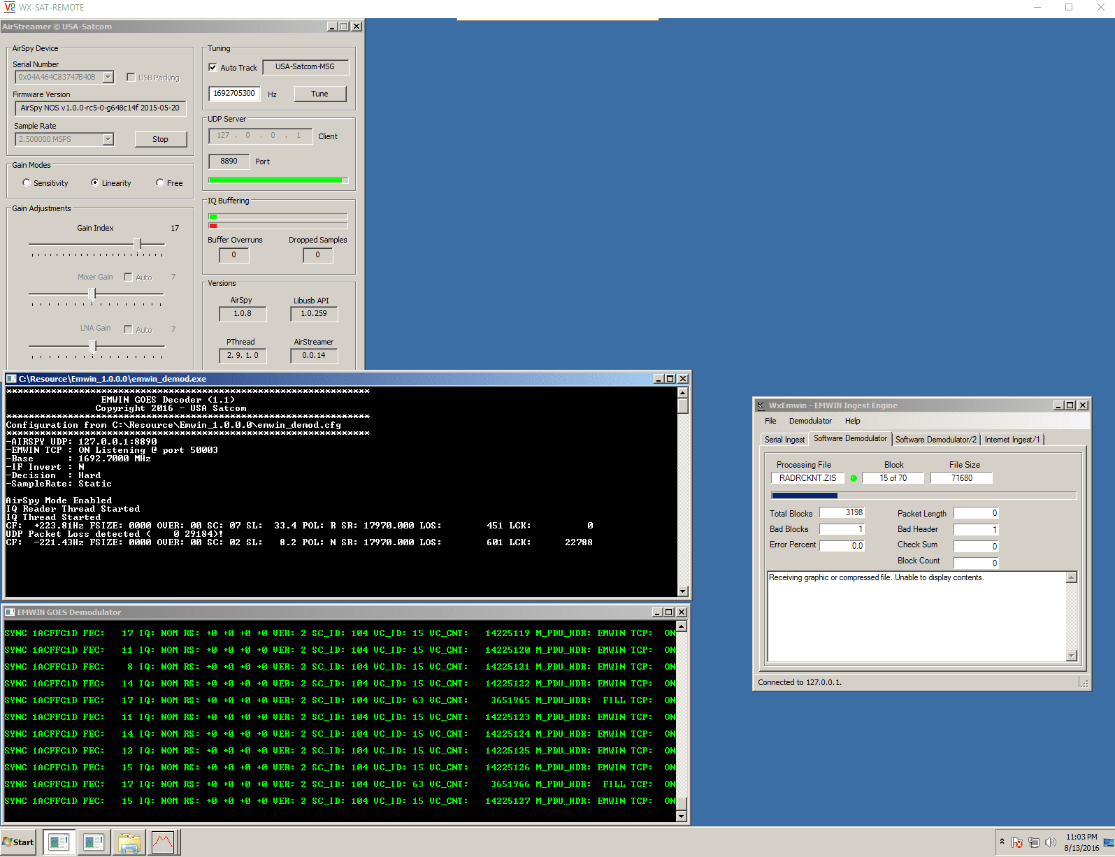 Definitely seems to be working for EMWIN. I can't wait until Joe/USA SatCom makes the lrit demodulator available!