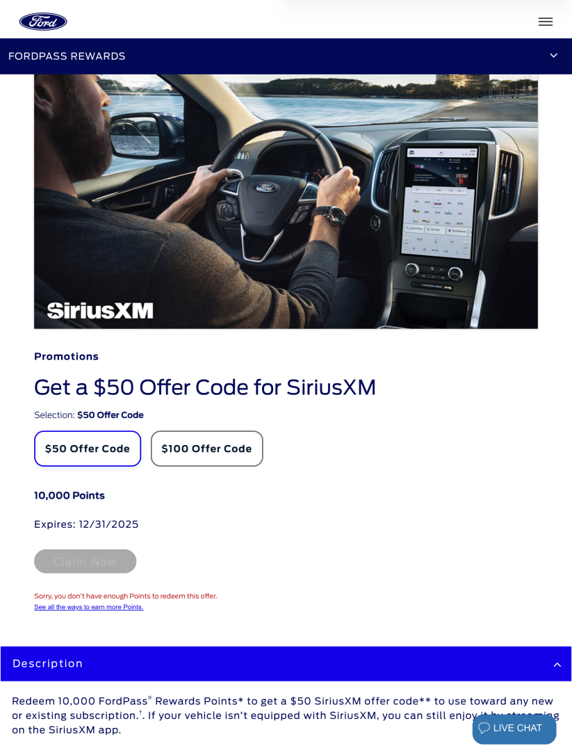 As you can see, if you don't have at least 10,000 points, you can't claim this offer. After cashing in 30,000 points, I'll have to wait until I get a car serviced at my Ford dealership or buy something through the Ford Parts website.