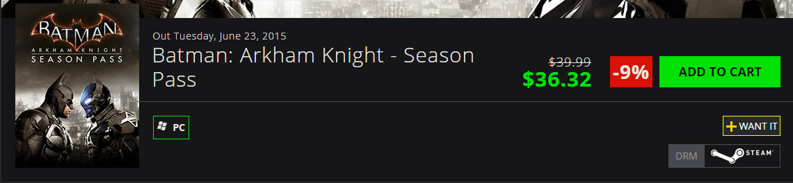 Wasn't thrilled when I was the price for Season Pass for Arkham Knight.