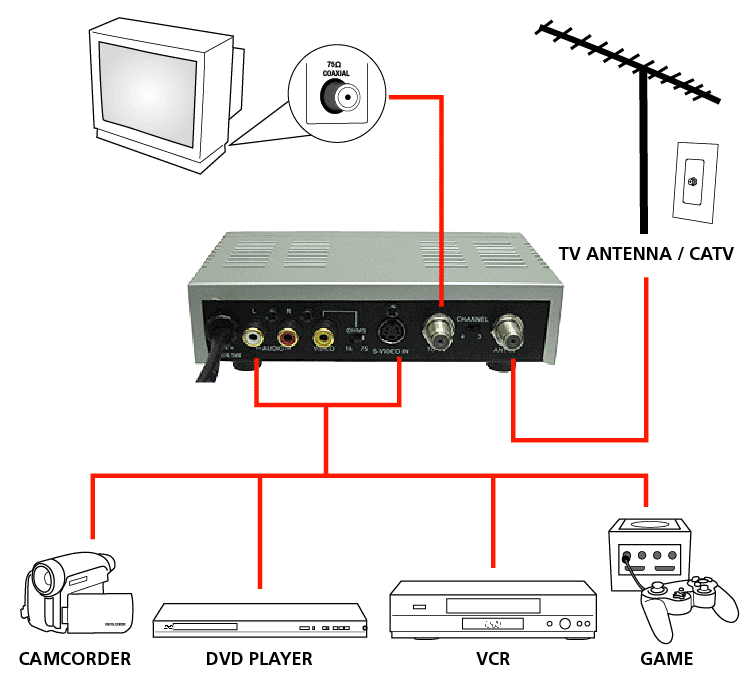 Hello, I just bought my daughter a different tv for her room. It only has the coax input. The only output I have from the dish box is red white yellow rca cables. I need to convert. Would an old vcr work somehow. If not is there a cheap option. I saw a box called a RF MODULATOR RCA TO COAX CONVERTER but wasn't sure it is was what I needed or not. I was afraid to order it before I ask. I tried to change channels on the setup on the dish box and channels 3 and 4 are greyed out. Anyway any help would be greatly appreciated. Thank you