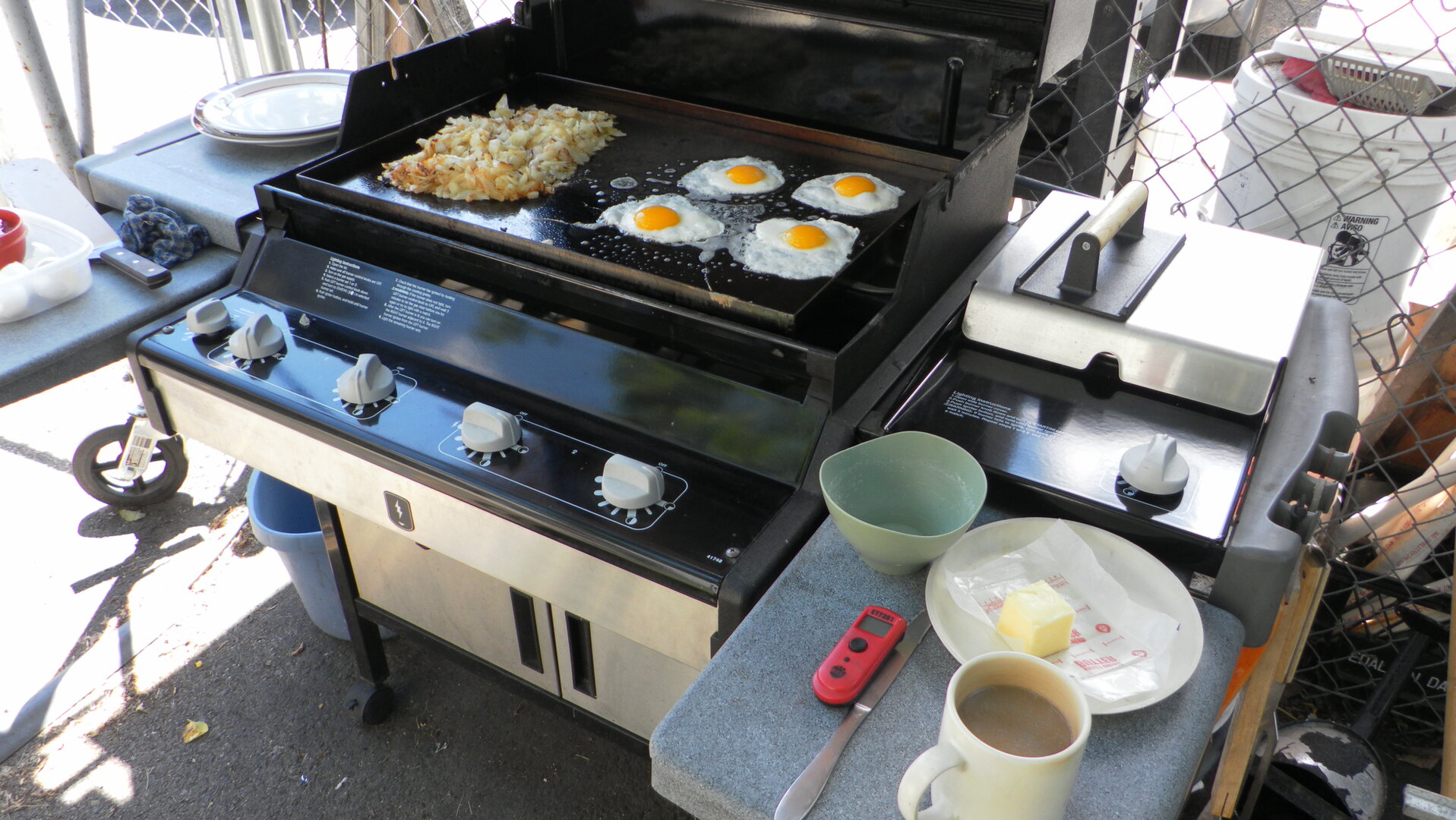 Nice grill! I need something like that. The only thing missing is a couple thick slabs of bacon to go with that bacon press.