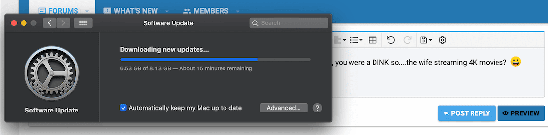 As I said, macOS Catalina, which takes a while at 25 Mbps!